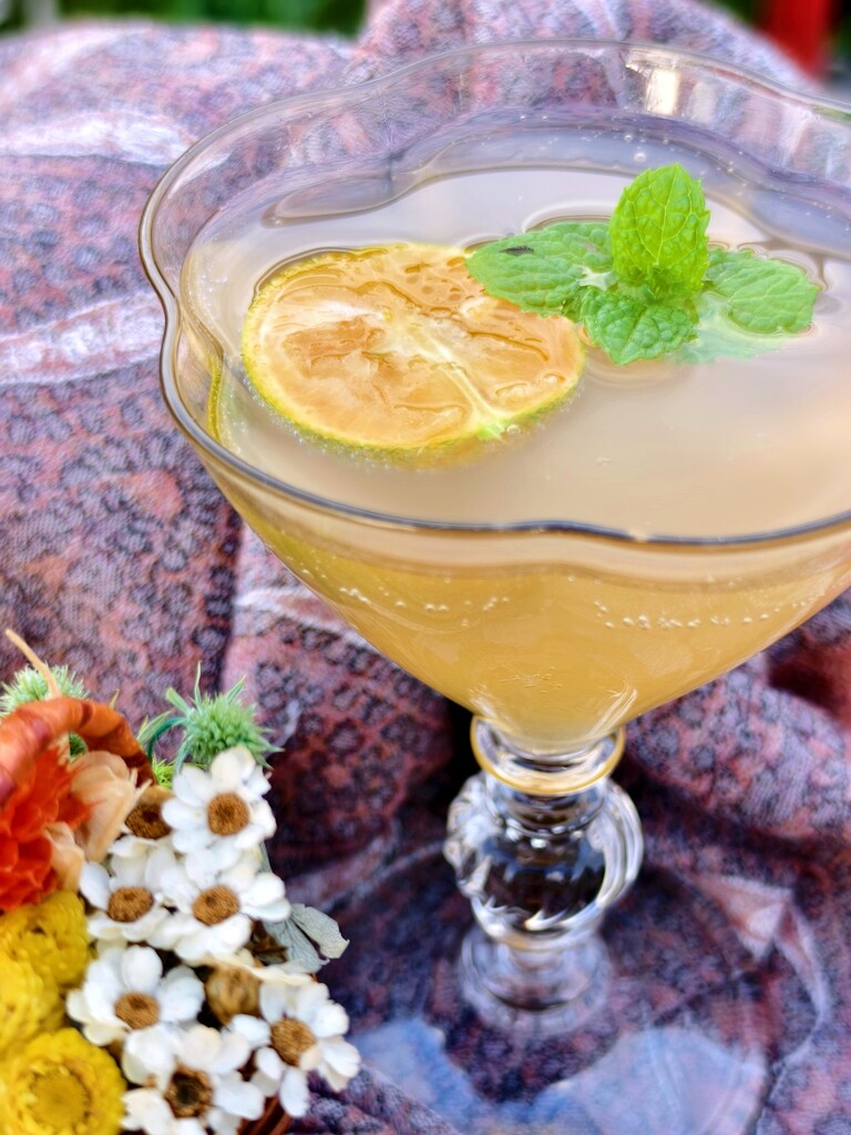 也可以搭配新鮮現切水果,加上石榴汁,使用氣泡水做稀釋,