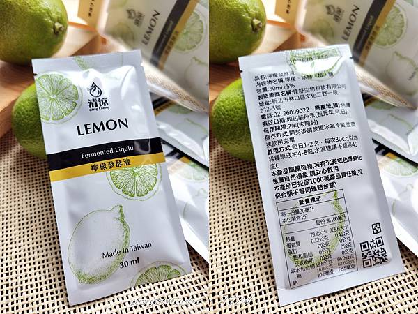 清涼檸檬酵素(發酵液)撕開包裝時,先聞到的是淡淡的發酵氣味,甜味與檸檬的清香則是在口中時更明顯。