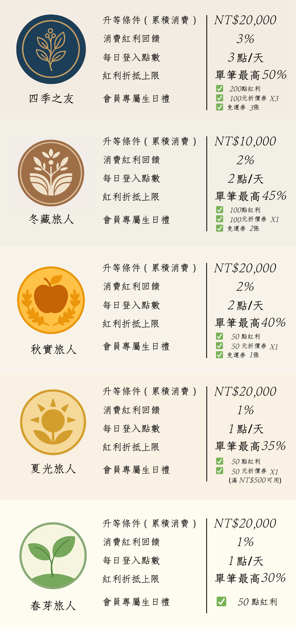 清涼・四季旅人|會員等級說明