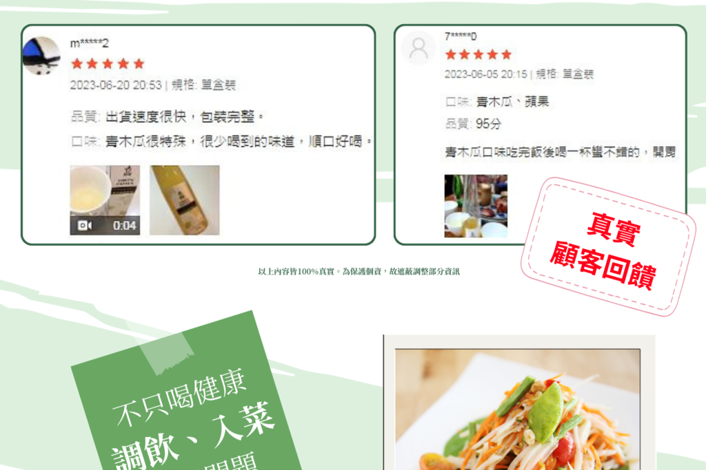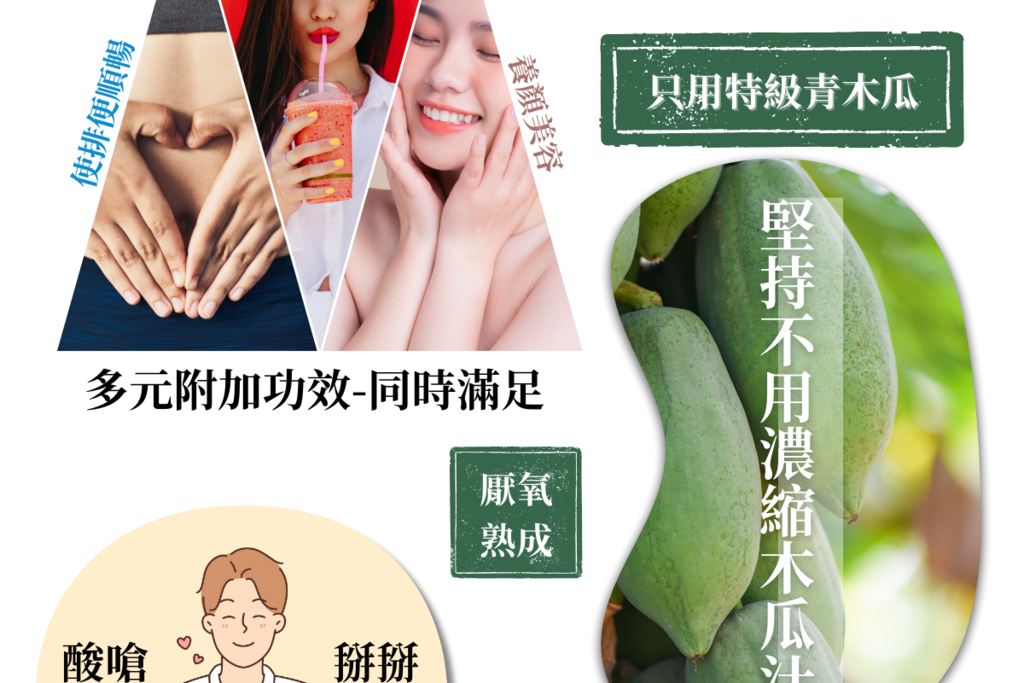 ✓ 特級青木瓜釀製:自然發酵,保留木瓜酵素