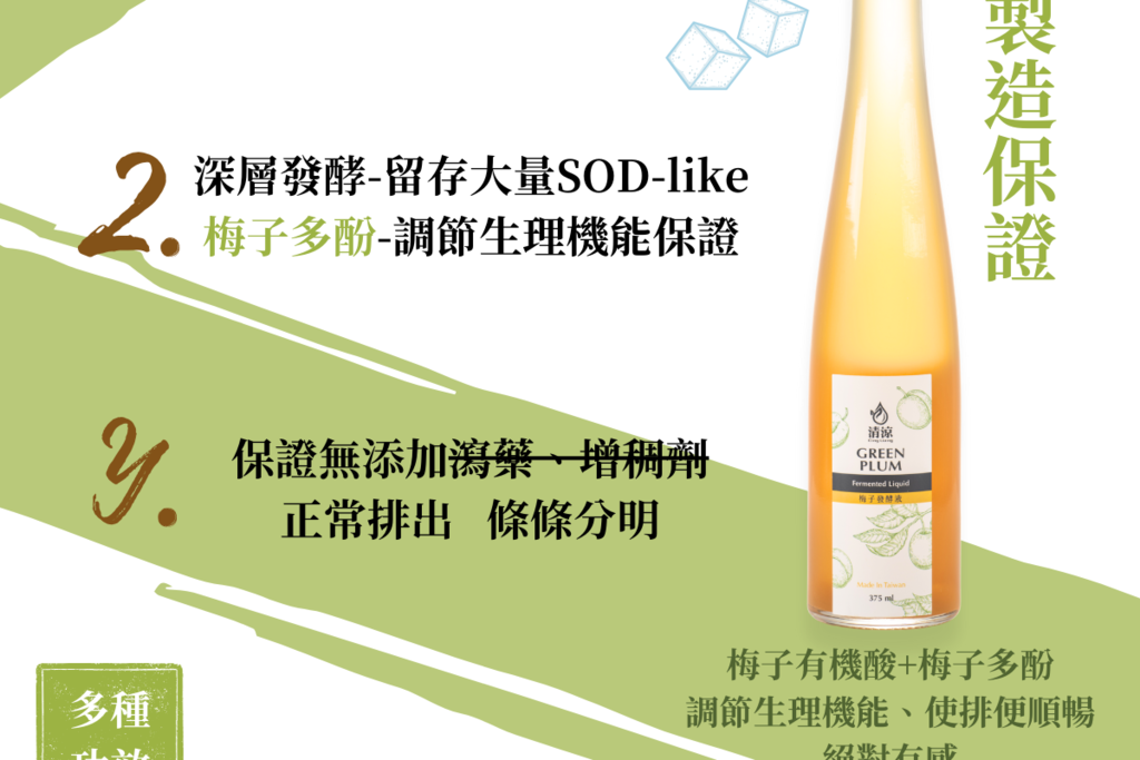 2.梅子酵素,以天然發酵製成,包含多種益菌,口感溫純易入口。