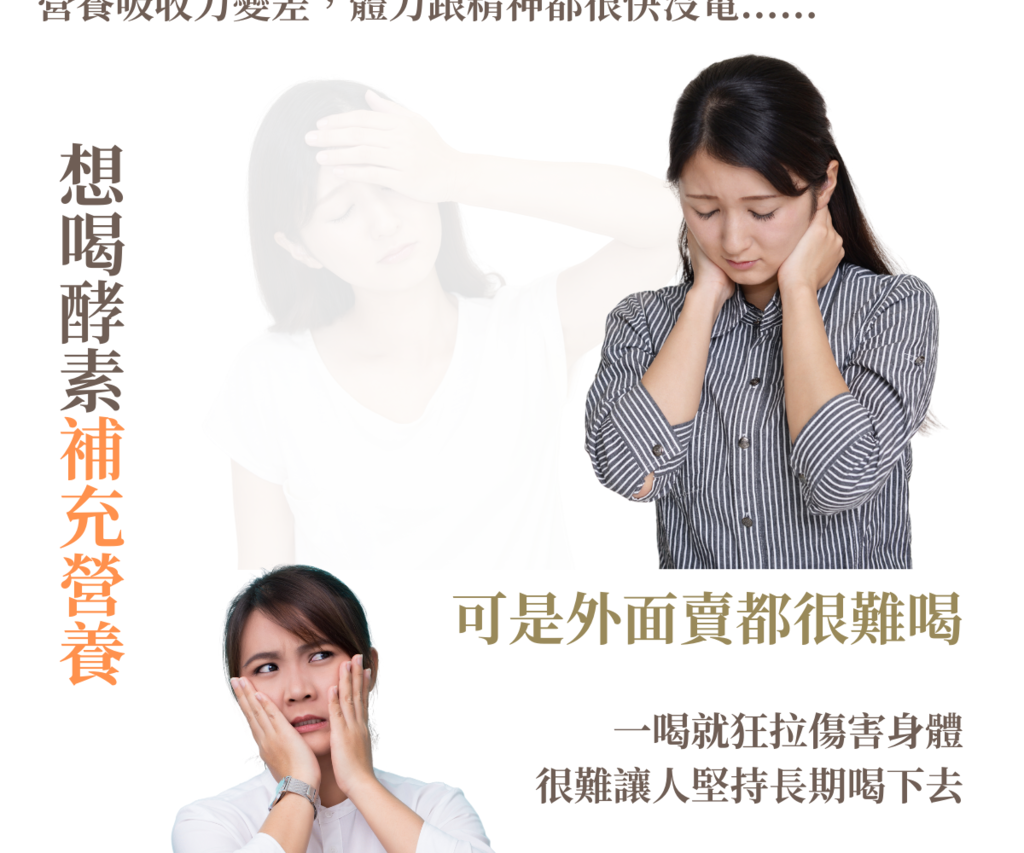 A9:消化不良、腸道不適、腸胃道機能維持需求、想改善新陳代謝、日常身體保養、想要體質調整、需要營養補充的人,都很適合吃綜合酵素。其中,不喜歡吃甜的老人家,特別推薦。