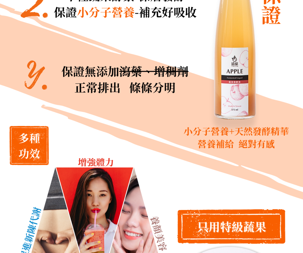 ✓ 小分子發酵液:好吸收,口感清爽無負擔