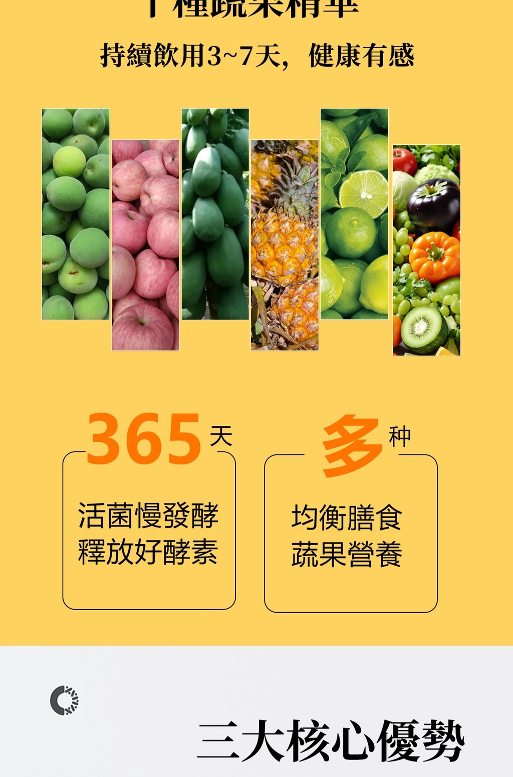 ✓ 十種蔬果發酵:均衡補給,補足缺乏蔬果營養